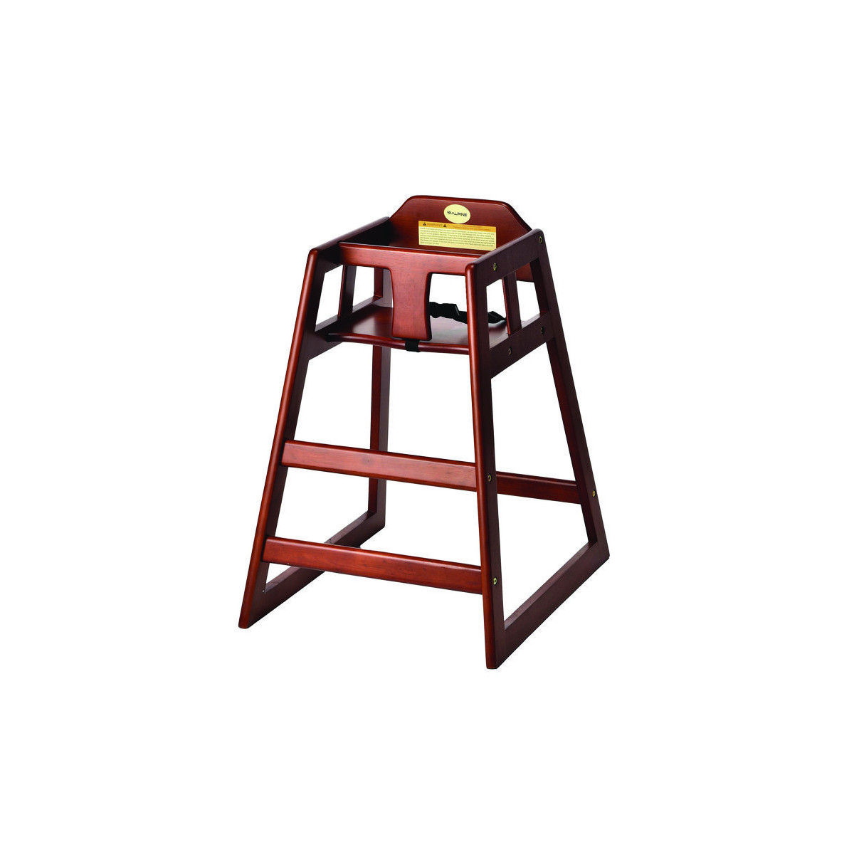 As children's safety is our primary goal, we've constructed this chair with a wide A-frame to ensure maximum tip resistance and to make for easy stacking and storage capabilities. A safety belt is installed to secure your child in the seat. Accompanying our Wooden High Chair is preinstalled safety belts made in a thick tear-resistant nylon weave, giving your guests peace of mind that their children are secure. The item is unassembled upon receipt but can be built in less than 20 minutes. When servicing families, you need to consider the necessary furniture required for your little guests. The Alpine Wooden High Chair is an adequate solution to ensuring children ages one to three have suitable seating that enables them to enjoy their meal. Not only do our chairs provide support for your patrons, but they stylistically add to your establishment's ambiance. Our high chairs are made from premium quality rubberwood that can handle daily wear and tear without decreasing its visual appeal. The beautiful finish fits a wide variety of designs.