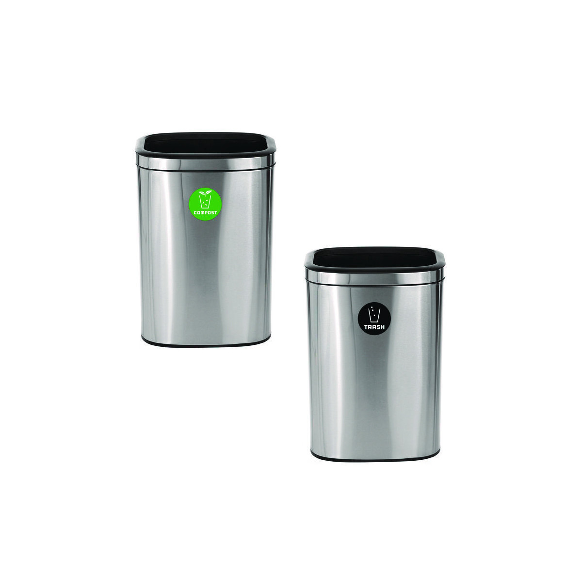 When equipping your business's interior with waste receptacles, you want to be reassured it will survive constant daily use and add to your company's aesthetic. With our modern, multi-stream waste management slim open top 10.5 Gallon Stainless Steel Compost and Trash Stations, you can be confident you're getting an everlasting product that will help maintain cleanliness in your facilities. To help accommodate a more significant amount of compost and trash, the 10.5-gallon capacity will fulfill your foot traffic demands. Included with every purchase is a durable compost and trash sticker that will identify its intended purpose. The vibrant colors of the stickers offer optimal visibility, assuring waste goes into the proper stream. In addition, the lids of the receptacles are seamlessly designed to conceal trash bags and be easily removed when needed. Its slim design allows it to fit comfortably in tight spaces and does not compromise on capacity. As a result, you gain a sleek and sufficient waste management station. Our slim open top 10.5 Gallon Stainless Steel Compost and Trash Stations will allow you to streamline waste collection in your high-traffic area while adding a touch of modern appeal.