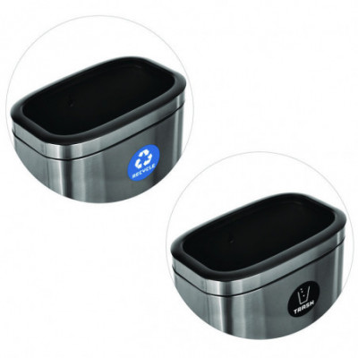 When equipping your business's interior with waste receptacles, you want to be reassured it will survive constant daily use and add to your aesthetic. With our modern, multi-stream waste management 10.5 Gallon Recycling and Trash Station, you can be confident you're getting an everlasting product that will help maintain cleanliness in your facilities. To help accommodate a more significant amount of recycling and trash, the 10.5-gallon capacity design will fulfill your foot traffic demands. Every purchase includes a recycling and trash sticker designed to handle daily wear and tear and identify the unit's intended purpose. The vibrant colors of the stickers offer optimal visibility, assuring waste goes into the proper stream. In addition, the lids of the receptacles are created seamlessly to conceal trash bags but are easily removed when needed. The slim design allows it to fit comfortably in tight spaces and not compromise on its waste capacity. As a result, you will have ample space and a sufficient waste management station. Our 10.5 Gallon Recycling and Trash Station will allow you to streamline waste collection in your high-traffic area while adding a touch of modern appeal.