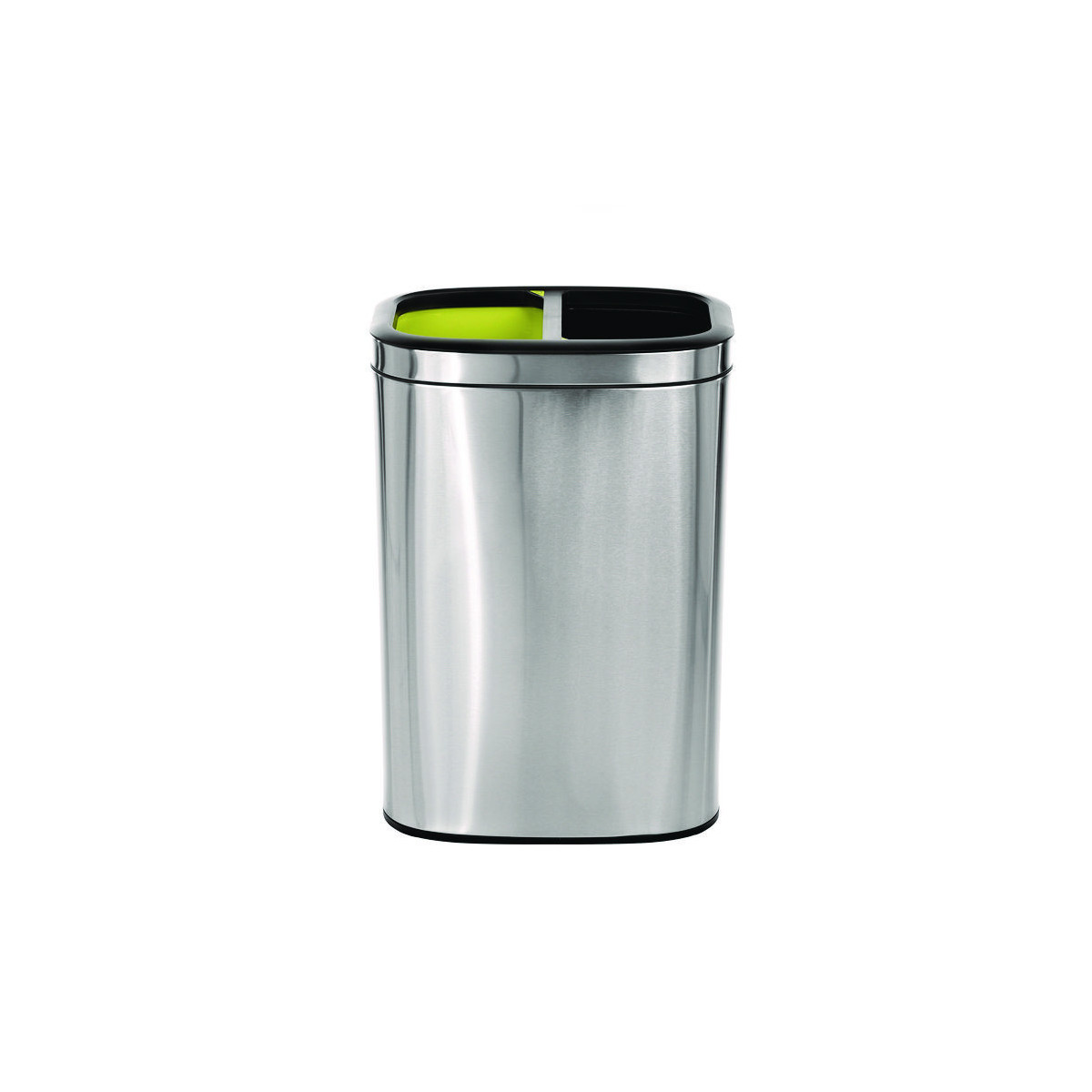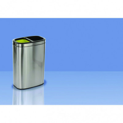 This dual compartment trash can is not just a waste bin, it's also an additional source of style and decor that's suitable in any environment. It's great for high traffic areas and for segregating trash for recycling. This large capacity trash bin features a large diameter opening for waste disposal access. It includes rigid black and yellow plastic liners to easily remove trash and dump into trash bags or large disposals. Color coded for separating waste vs recycling contents. The external waste bin is constructed of durable and antimicrobial stainless steel for long-lasting use.