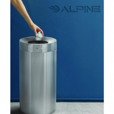 The Alpine Industries 27 Gal Stainless steel commercial indoor trash can features both heavy-duty material and aesthetic appeal. This is an essential item to have for high traffic facility management. Designed with an open top for quick and easy trash disposal on-the-go. The top conceals trash bags giving it a neat and professional appearance. Easy to lift off lid for simple baggage removal and replacement. Constructed of stainless steel, it is easy to clean and antimicrobial. Made for indoor use only.