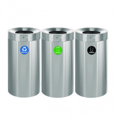 This stainless steel commercial indoor trash can features both heavy-duty material and aesthetic appeal. It's is an essential item to have for high traffic facility management. Designed with an open top for quick and easy trash disposal on-the-go.