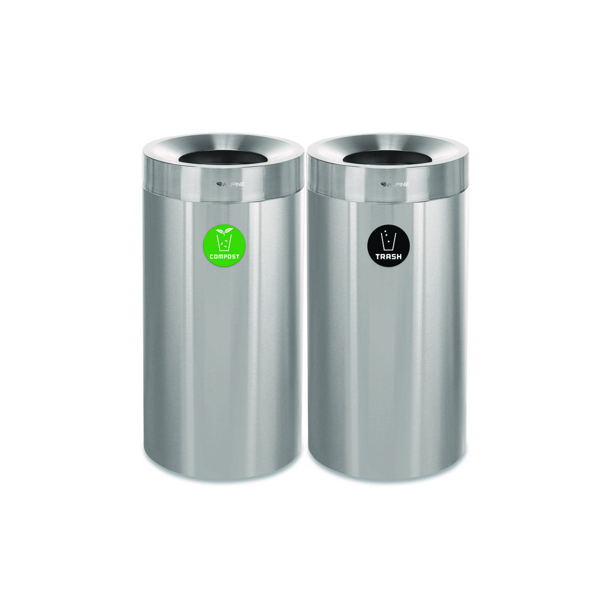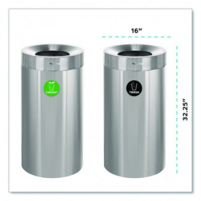 When equipping your business's interior with waste receptacles, you want to be reassured it will survive constant daily use and also will aesthetically add to your environment. With our modern, multi-stream waste management 27 Gallon Stainless Steel Compost and Trash Station, you can be confident you're getting an everlasting product that will help maintain cleanliness in your facilities. To help accommodate a more significant amount of compost and trash, the 27-gallon capacity can fulfill your foot traffic demands. Included with every purchase is a compost and trash sticker that will identify its intended purpose and be able to handle daily wear and tear. The vibrant colors of the stickers offer optimal visibility, assuring waste goes into the proper stream. In addition, the lids of the receptacles are created to display a seamless design that conceals trash bags but can efficiently be removed when needed. The large open top design of the lid will also allow precise disposal of all forms of waste. Our 27 Gallon Stainless Steel Compost and Trash Stations will allow you to streamline waste collection in your high-traffic area while adding a touch of modern appeal.