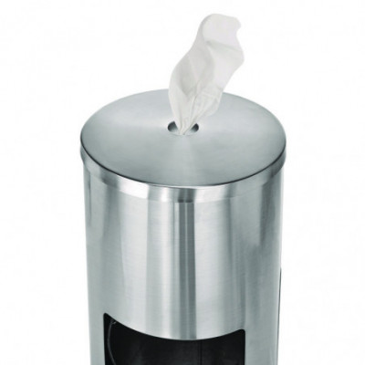 The Alpine Industries Stainless Steel Trash Can with Gym Wipe Dispenser combine a dispenser and trash can into one sleek and stylish product. It will allow you to eliminate bulky trash cans, wipe dispensers, 2-in-1 dispenser, keeping your facilities clean and modern. Each Stainless Steel Trash Can with Gym Wipe Dispenser comes with a convenient wipe holding bucket and with a premium opening, making dispensing hassle-free. The compact design of the dispenser enables it to be versatile but is created with a broad enough base that will provide sufficient stability. It is big enough to hold large quantities and has an easy access door to change out trash bags. The added sanitary wipes dispenser with a bonus wipe holding bucket is an added convenience to keep large areas clean and germ free. You can empty out the trash and with quick wipe clean up as well. The sleek and clean design will go perfectly in all spaces to add a modern touch. This makes it ideal for gyms, medical facilities, hotels, sporting venues, and other high-traffic areas. Additionally, the 7-gallon built-in trash can requires less frequent servicing and is quickly emptied with the user-friendly back rear access door. Our Stainless-Steel Standing Gym Wipe Dispenser with a Trash Can is a lasting investment that will service your facility adequately.