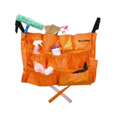 Alpine Industries 12-Pocket Trash Can Caddy Bag is made from 100% polyester, making it conveniently light weight and abrasion resistant. This trash can caddy bag is a snug fit for large round and square trashcans with its easy attach straps that ensure tightness. Store cleaning supplies like spray bottles and gloves, even long-handled tools like brooms. Have everything you need to keep your facility clean at an arm's length and increase the efficiency of janitorial and maintenance work at any time and any place. Fits 32 gal to 44 gal commercial trash cans. The nylon caddy bag features nine pockets to store cleaning supplies, such as cleaning spray bottles and three pockets to store tools like hammers or wrenches.
