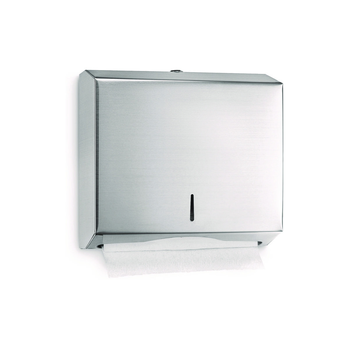 Ideal for high traffic restrooms, break rooms, food service facilities, health-care facilities and more. Made of durable 304 stainless steel with a brushed finish, features a lock to help prevent tampering and vandalism, and a sight window on the dispenser's front to monitor fill level.
