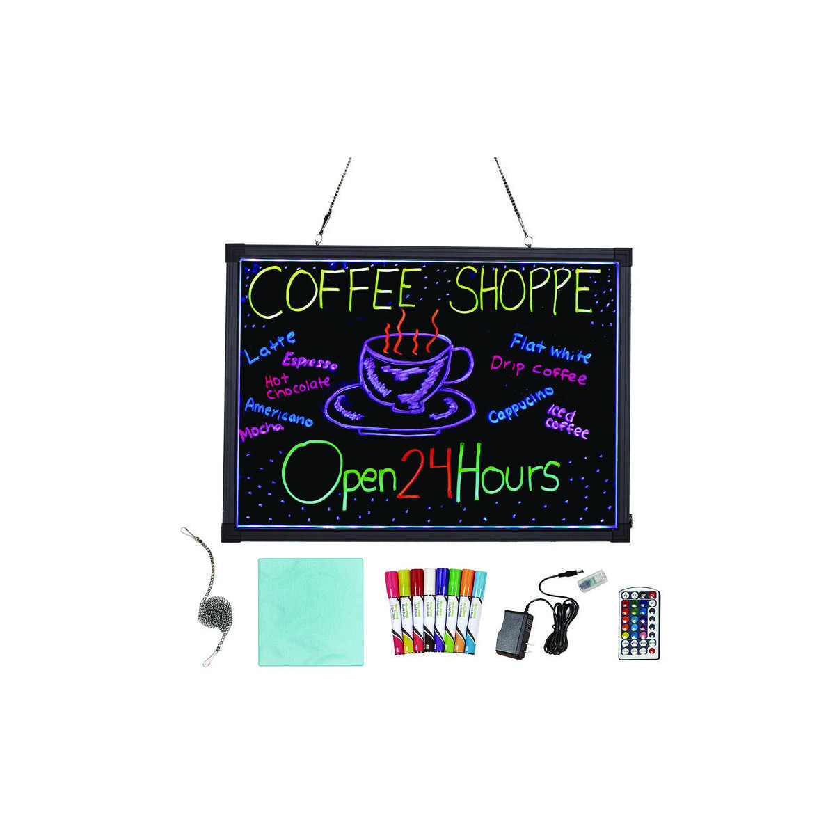 LED Illuminated Hanging Message Writing Board, Black 26" x 18" Surface, Black 27.6" x 19.7" Frame