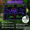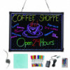 This LED illuminated hanging message writing board features a glowing neon notice sign with 48 different flashing display styles. With a main panel made of high-quality tempered glass fitted in a durable aluminum frame, this LED writing board meant for outdoor restaurant or venue advertising.