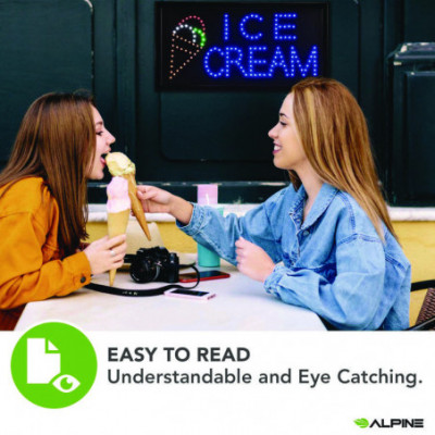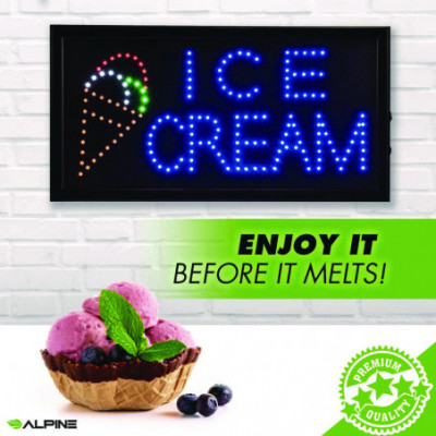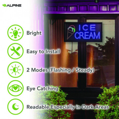Step into a realm of unparalleled business brilliance with Alpine Industries LED Signs, the ultimate solution to outshine your competitors and pave the way for unprecedented visibility and success. Bid farewell to dimly lit storefronts and embrace a luminous future powered by our cutting-edge LED lights, meticulously engineered to deliver unparalleled brightness, safety, and energy efficiency. In comparison to outdated neon signs, our LEDs not only illuminate your establishment with clarity but also contribute to a more sustainable and eco-friendly operation, aligning seamlessly with modern values and expectations. But the advantages of our LED Signs extend far beyond mere illumination. Imagine the impact of a vibrant Ice Cream sign adorning your storefront, beckoning customers with its irresistible glow. This is not just any sign-it's a beacon of opportunity, a promise of sweet indulgence and memorable experiences. Crafted to captivate attention and inspire curiosity, our Ice Cream sign is designed to give your business the boost it deserves. Its bright and eye-catching display is guaranteed to attract new customers and keep them coming back for more. But wait, there's more. Hanging your sign has never been easier thanks to the included hanging chain, allowing you to effortlessly display it at your place of business for maximum impact. What's more, our LED Ice Cream sign is UL Certified and plugs into any outlet, ensuring hassle-free installation and peace of mind. With the on and off switch conveniently located on the side of the frame, operation is simple and intuitive. Plus, with two display modes-flickering and animated-controlled by a switch on the power cord, you have the flexibility to customize the ambiance to suit your preferences. It's more than just a sign; it's a statement. An invitation for customers to indulge in the flavors of your ice cream, drawn in by the tantalizing display of your illuminated storefront. So why wait? Elevate your business to new heights with Alpine Industries LED Signs-a symbol of innovation, quality, and success that promises to set your establishment apart and ensure its flourishing for years to come.