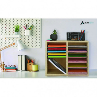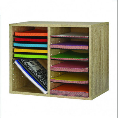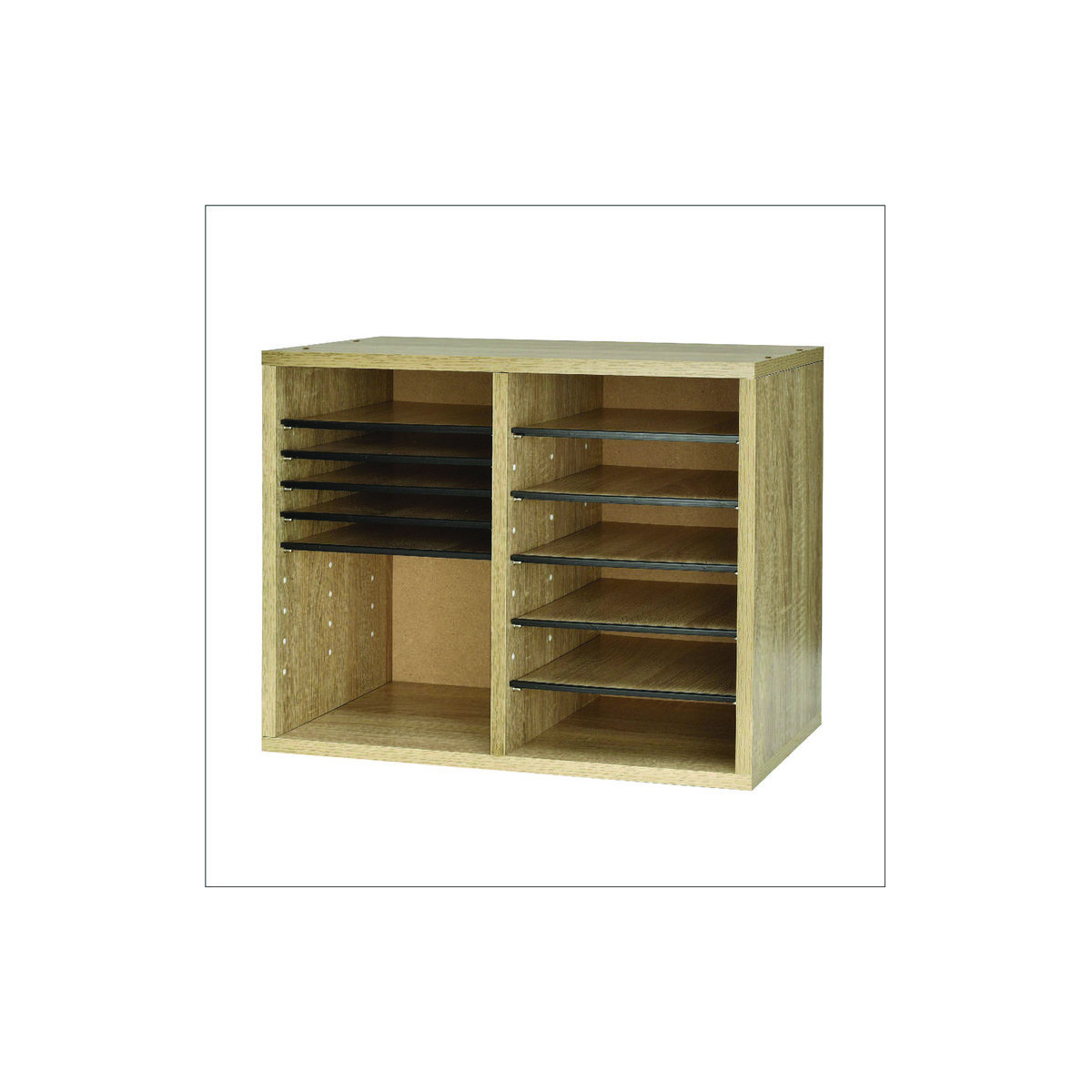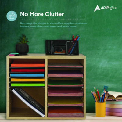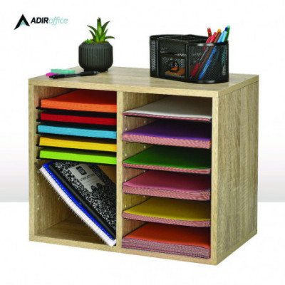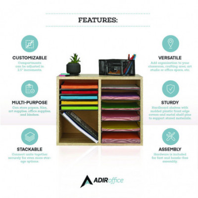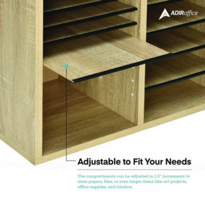 The Adir Office Wood Adjustable 12 Compartment Literature Organizer is just the ticket for organizing and keeping track of sales brochures, product literature and other office materials supporting your company's businesses. These attractive storage units make life easier for your sales support staff members especially if they have other responsibilities as well. Tasks are made easier because these literature organizers provide options including color coding and labeling capabilities enabling quick selection of material to be distributed. Ruggedly constructed, the literature organizers simplify retrieval of just what's needed to meet customer and prospect requirements.