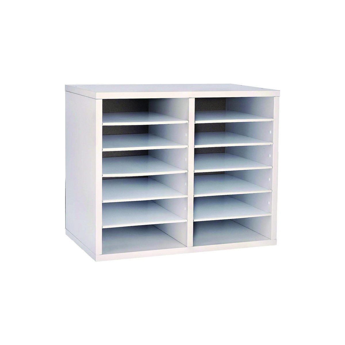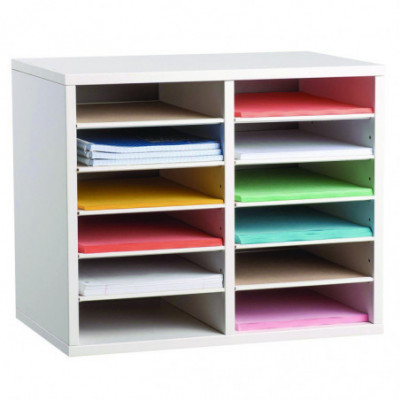 Wood Adjustable 12 Compartment Literature Organizer, 12 Sections, Letter Size, 20 x 11.8 x 16.3, White