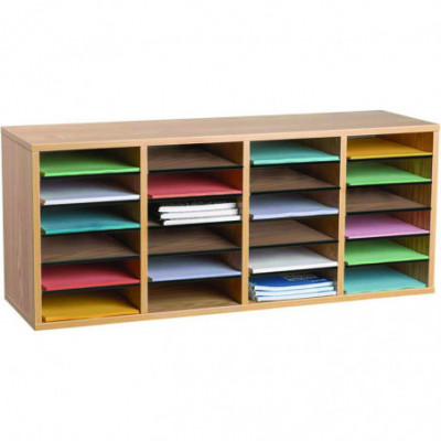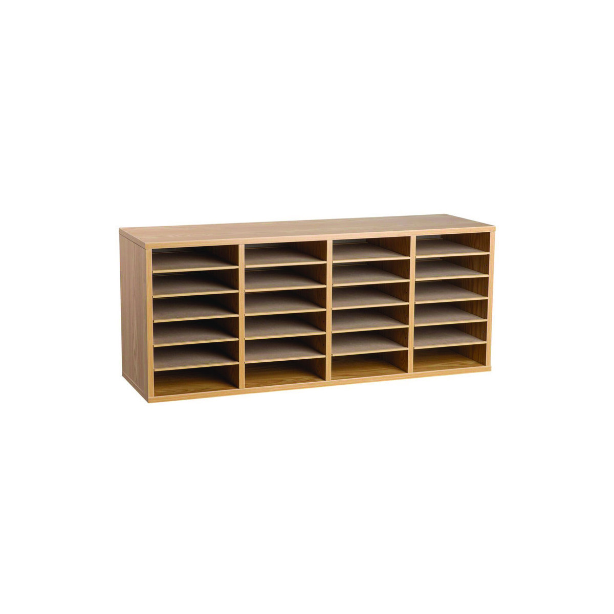 The AdirOffice Wood Adjustable 24 Compartment Literature Organizer is just the ticket for organizing and keeping track of sales brochures, product literature and other office materials supporting your company's business. These attractive storage units make life easier for your sales support staff members, especially if they have other responsibilities as well. Ruggedly constructed, this accessory is made out of durable, medium-density fiberboard construction to supply long-lasting strength for years to come. The letter size compartments hold up to 15 lbs and adjust in 2.5 in increments to meet all of your needs in the home, office or classroom. Tasks are made easier because these organizers provide options including color coding and labeling capabilities, enabling quick selection of material to be distributed. It features an 11.8 in depth and removable shelves to accommodate items of various different sizes.