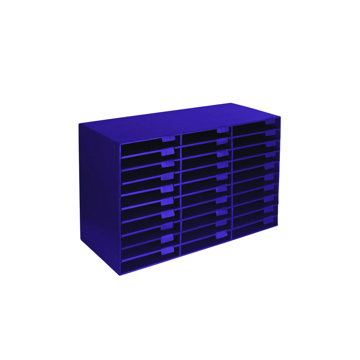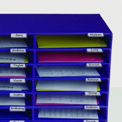 Keep your classroom or office clean and organized with this classroom file/literature organizer. The compact organizer and folder slot storage system includes open slots to store papers and folders. This provides enough room to easily slide a stack of papers, magazines, notebooks, or slim binder into each slot without taking up too much space. The sturdy cabinet is built to last with a durable design and strong shelves that can easily carry the weight. Plus, you can assign slots by name, project, or year simply by placing a labeled sticker on the innovative slot tab.