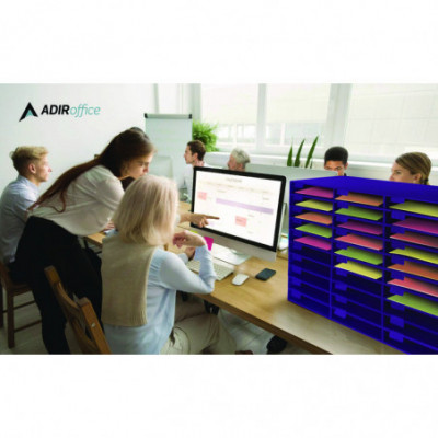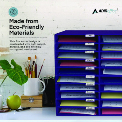 Maintain a clean and organized environment in your classroom or office with the AdirOffice Classroom File/Literature Organizer. This compact yet efficient storage solution features multiple open slots specifically designed to neatly store a variety of items such as papers, folders, magazines, notebooks, and slim binders. Each slot provides ample space, allowing for easy insertion and removal of documents without cluttering your workspace. The organizer is constructed from high-quality cardboard, ensuring that it is exceptionally durable. Its robust design and strong shelves can comfortably support the weight of your stored items, providing a long-lasting and reliable organizational solution. Additionally, the AdirOffice File/Literature Organizer includes innovative slot tabs that can be easily labeled with stickers. This feature allows you to assign slots according to names, projects, or years, making it simple to categorize and retrieve your documents. Whether you are managing a busy classroom or a bustling office, this file sorter helps you maintain a tidy and efficient workspace, enhancing your productivity and organization.