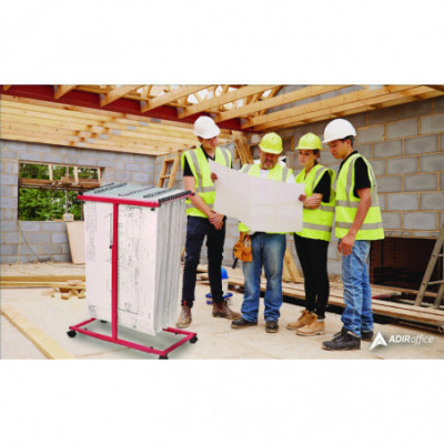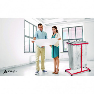 Get organized in the office with the AdirOffice Mobile Vertical Plan Center for Blueprints. For quick access, hanging blueprint storage, just clamp your files into hanging paper clamps and drop them into the top bracket. Designed for blueprints, maps and other large-format documents. Made of solid steel with a 240 lb weight capacity, this rack can hold up to 1,200 documents at once. With its durable construction and powder-coated finish, you can be certain that it will provide long-lasting strength and use throughout the years. For added convenience, this blueprint rack accommodates your largest files. The bracket accommodates 12 clamps and can be adjusted to fit paper clamps that are 36". Only one size of hanging clamps can be placed into this mobile blueprint stand at a time. An ingenious solution to the difficulties of moving documents, this mobile plan center works equally well in harsh environments such as construction sites and soft settings such as modern offices. It glides easily across spaces on its four swivel casters, two of which brake for control of movement and to keep it stable when you get to your destination.
