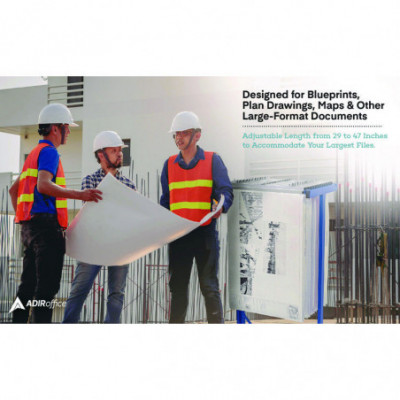 Stay organized and efficient in the office with the AdirOffice Expandable Mobile Plan Center for Blueprints. For quick access, hanging blueprint storage, just clamp your files into hanging paper clamps and drop them into the top bracket. Designed for blueprints, plan drawings, maps and other large-format documents. Made of heavy-gauge steel with a 360 lb weight capacity, this rack can hold up to 1,800 documents at once. With its durable construction and powder-coated finish, you can be certain that it will provide long-lasting strength and use for years to come. For added convenience, this blueprint rack is adjustable to accommodate your largest files. The bracket accommodates 18 clamps and can be adjusted to fit paper clamps that are 24", 30", 36" or 42". Only one size of hanging clamps can be placed into this mobile blueprint stand at any one time. An ingenious solution to the difficulties of moving documents, this mobile plan center works equally well in harsh environments, such as construction sites, and soft settings, such as modern offices. Four swivel casters, two of which brake for control of movement and to keep the rack stable when you get to your destination, let you move this much weight with ease.