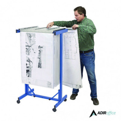 Carrying documents from desk to desk or shuffling them about is messy. This mobile plan center lets you easily roll your files anywhere, anytime. Simply drop the files in and lift them out, as needed. Composed of heavy gauge steel with ball bearing swivel casters (two with brakes), this unit allows for up to 18 hanging clamps with adjustable widths of 24" to 42". (Hanging clamps sold separately.) The stand is simple to set up and simple to use.