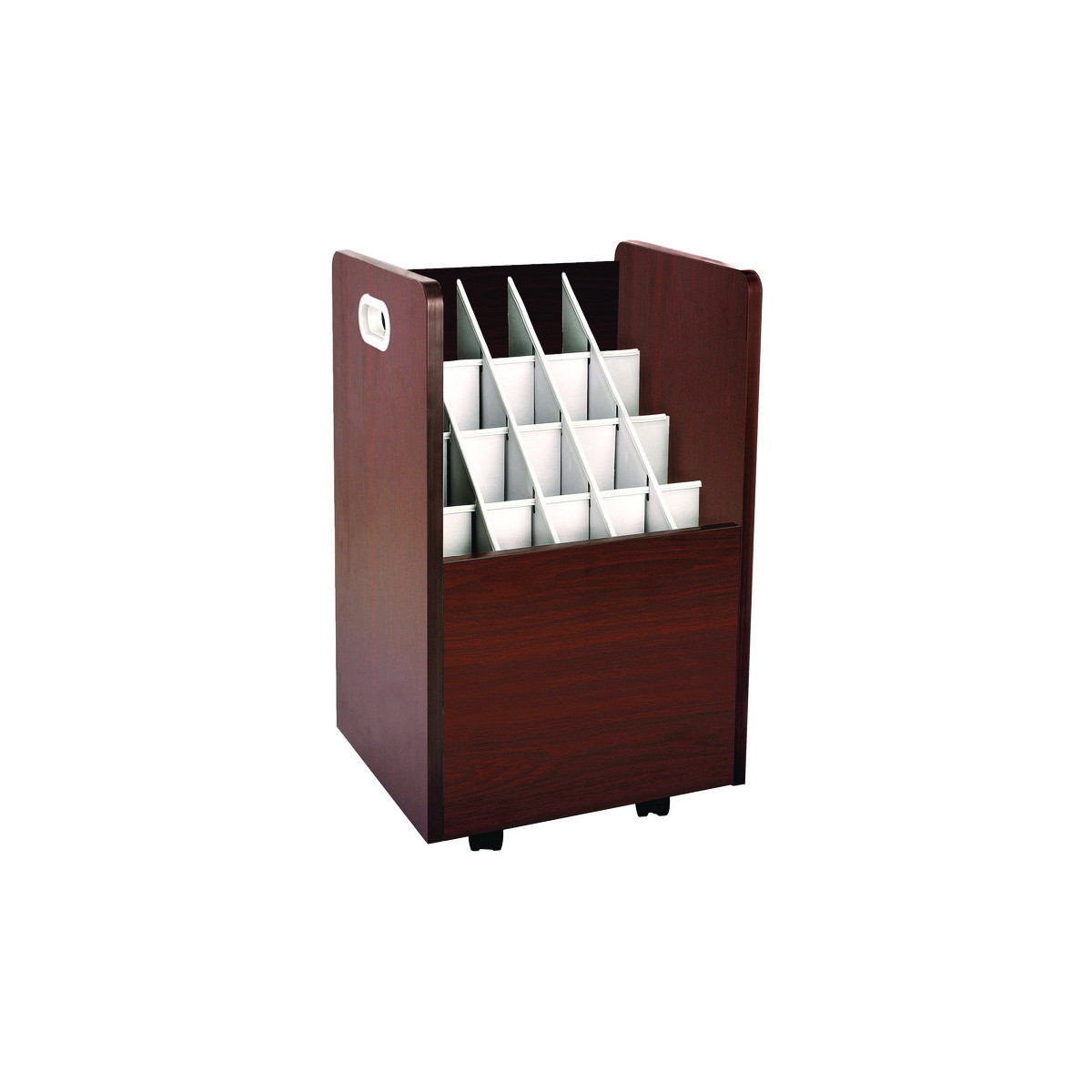 20-Slot Mobile Rolling Wood Blueprint Storage Cabinet Roll File Large Document Organizer, 15.25 x 13.25 x 24.75, Mahogany