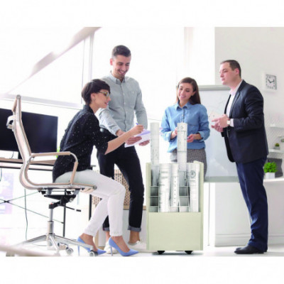 No matter how elaborates your current work-in-progress is, there's an efficient storage solution for keeping it organized. The AdirOffice Mobile Wood Blueprint Roll File holds your rolled blueprints, plan drawings, maps and other large-format documents snugly in square compartments, making it the perfect organizational solution. Sturdy and visually appealing, the unit is expertly crafted using durable wood composite to provide long-lasting strength and use for many years to come. It's furnished in laminate that will seamlessly complement any existing decor and boasts a 50 lb weight capacity to hold all of your rolled files in one convenient place. The bottom of the cabinet is outfitted with four swiveling casters to facilitate easy movement of your documents, while side handles make it easy to hold and transport the unit from one location to the next.