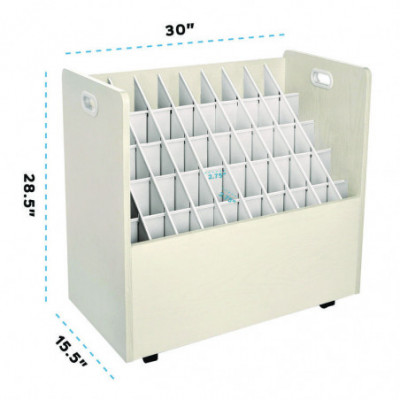 50-Compartment Mobile Wood Blueprint Rolled File Storage Organizer, 50 Compartments, 30 x 15.75 x 28.5, White