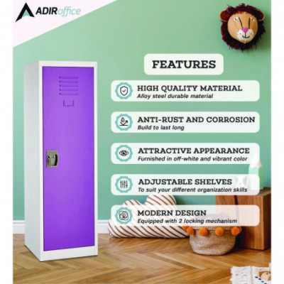 Crafted from high-quality steel, this locker is built to last and withstand the test of time. It is available in seven vibrant colors, making it a stylish addition to any office or school environment. With ample storage space for textbooks, clothes, personal belongings, and more, this locker ensures that your items are always organized and secure. Each locker door can be locked independently with included keys or accompanying locks, providing optimal security for your peace of mind. The minimalist design of our locker makes it suitable for a wide range of spaces. They all come equipped with coat and bag hooks, making organization easy and accessible. Proper air circulation is enabled with vented doors, keeping your items fresh and dry all day long. Additionally, each door features a metal nameplate that can be used for locker assignments or personalization. Assembling the locker is a breeze too with complete instructions and installation guidance.