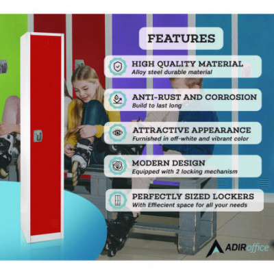 Crafted from high-quality steel, this locker is built to last and withstand the test of time. It is available in seven vibrant colors, making it a stylish addition to any office or school environment. With ample storage space for textbooks, clothes, personal belongings, and more, this locker ensures that your items are always organized and secure. Each locker door can be locked independently with included keys or accompanying locks, providing optimal security for your peace of mind. The minimalist design of our locker makes it suitable for a wide range of spaces. They all come equipped with coat and bag hooks, making organization easy and accessible. Proper air circulation is enabled with vented doors, keeping your items fresh and dry all day long. Additionally, each door features a metal nameplate that can be used for locker assignments or personalization. Assembling the locker is a breeze too with complete instructions and installation guidance.