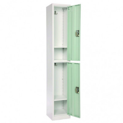 Steel Storage Locker, 2 Compartment, 12 x 12 x 72, Misty Green