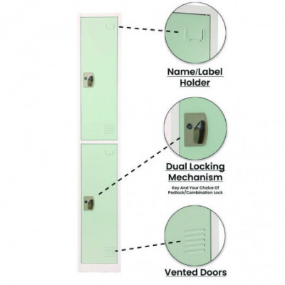 Crafted from high-quality steel, this locker is built to last and withstand the test of time. It is available in seven vibrant colors, making it a stylish addition to any office or school environment. With ample storage space for textbooks, clothes, personal belongings, and more, this locker ensures that your items are always organized and secure. Each locker door can be locked independently with included keys or accompanying locks, providing optimal security for your peace of mind. The minimalist design of our locker makes it suitable for a wide range of spaces. They all come equipped with coat and bag hooks, making organization easy and accessible. Proper air circulation is enabled with vented doors, keeping your items fresh and dry all day long. Additionally, each door features a metal nameplate that can be used for locker assignments or personalization. Assembling the locker is a breeze too with complete instructions and installation guidance.