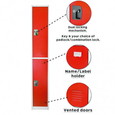 Crafted from high-quality steel, this locker is built to last and withstand the test of time. It is available in seven vibrant colors, making it a stylish addition to any office or school environment. With ample storage space for textbooks, clothes, personal belongings, and more, this locker ensures that your items are always organized and secure. Each locker door can be locked independently with included keys or accompanying locks, providing optimal security for your peace of mind. The minimalist design of our locker makes it suitable for a wide range of spaces. They all come equipped with coat and bag hooks, making organization easy and accessible. Proper air circulation is enabled with vented doors, keeping your items fresh and dry all day long. Additionally, each door features a metal nameplate that can be used for locker assignments or personalization. Assembling the locker is a breeze too with complete instructions and installation guidance.