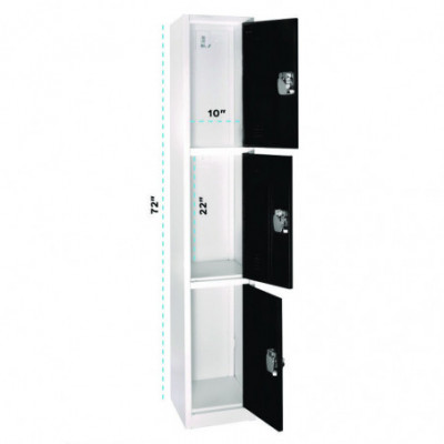 Steel Storage Locker, 3 Compartment, 12 x 12 x 72, Black