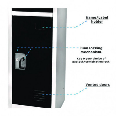They provide ample storage space for clothing, shoes, books, and other personal belongings, ensuring your child's items are always organized and secure. Each locker door can be locked independently with included keys or accompanying locks, providing the highest level of security for your peace of mind.