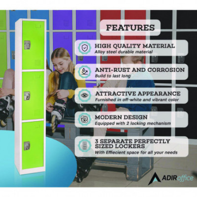 They provide ample storage space for clothing, shoes, books, and other personal belongings, ensuring your child's items are always organized and secure. Each locker door can be locked independently with included keys or accompanying locks, providing the highest level of security for your peace of mind.