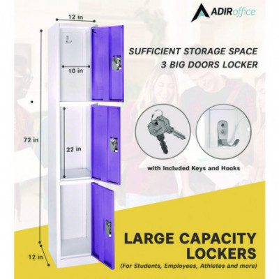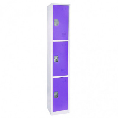 Steel Storage Locker, 3 Compartment, 12 x 12 x 72, Purple