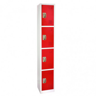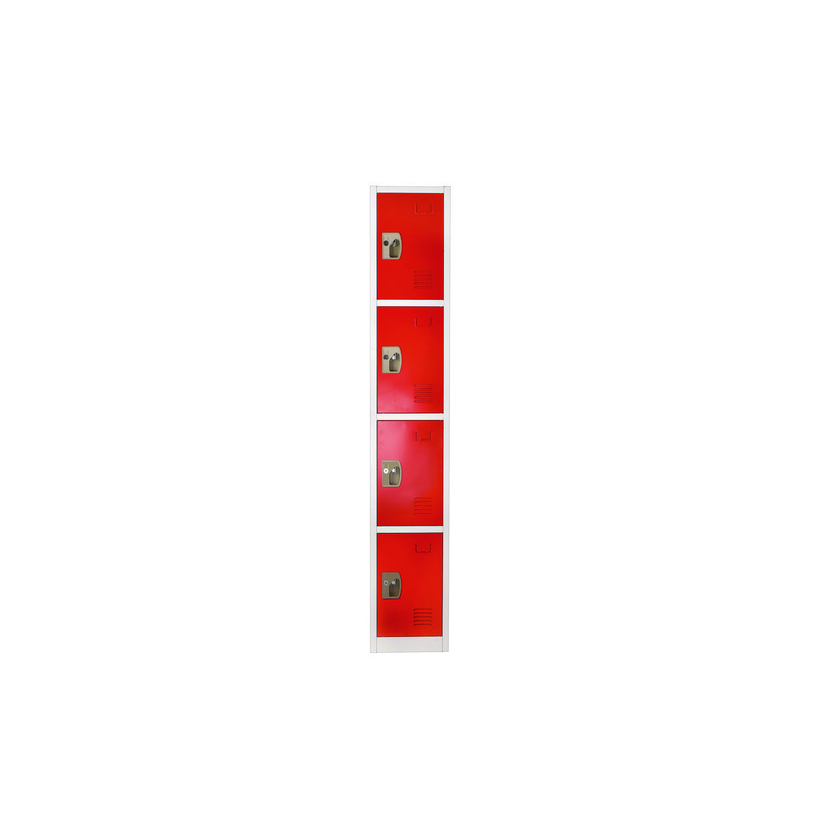 Steel Storage Locker, 4 Compartment, 12 x 12 x 72, Red