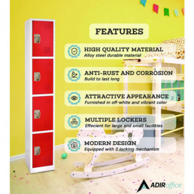 They provide ample storage space for clothing, shoes, books, and other personal belongings, ensuring your child's items are always organized and secure. Each locker door can be locked independently with included keys or accompanying locks, providing the highest level of security for your peace of mind.