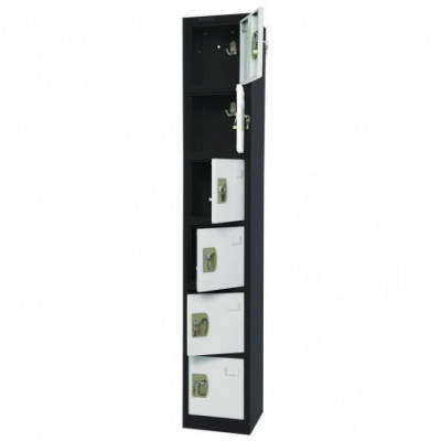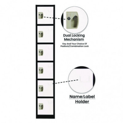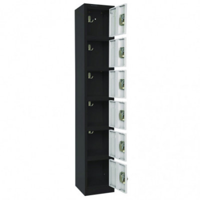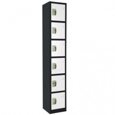 Steel Storage Locker, 6 Compartment, 12 x 12 x 72, Black Body/White Doors