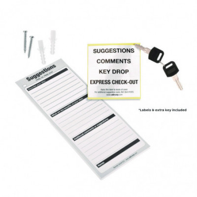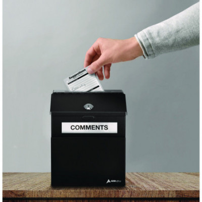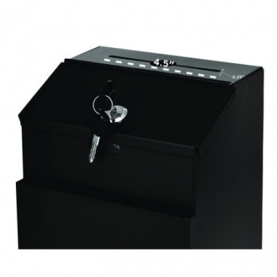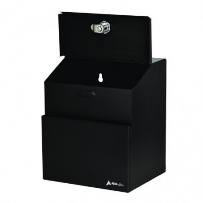 Encourage valuable customer and employee feedback with AdirOffice Steel Suggestion Box. Made using durable, steel construction with a powder-coated, scratch-resistant finish, this box will last you well into the future. It can be easily mounted on the wall with included hardware or simply set down on a table, desk or another flat surface. Place it in any company to get suggestions and/or comments from your employees or customers. Knowing that their comments will be kept confidential and that they can remain anonymous allows people to voice their greatest concerns and to succeed in business, communication is key. With a secure lock to keep everything safe inside, this box also provides the perfect solution for dropping off keys and payments after hours. Two keys are included with this purchase for quick and easy access inside. The deposit slot is 4.75" length x 0.13" width, making it ideal for dropping off payments, interoffice mail or suggestion cards. Additionally, the opening in the middle is large enough to drop off keys. A front pocket is ideal for holding pens, suggestion cards and small envelopes, allowing for writing suggestions and comments right on the spot. Stick-on labels that dedicate the box for suggestions, comments or for dropping off keys, as well as 25 suggestion cards are also included with this purchase.