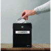 Encourage reliable interaction with clients or employees with this lockable steel suggestion box. The lock ensures confidentiality, which inspires your customers and staff to share their opinions and comments honestly. Compact and lightweight, the box can be placed in any easy-to-reach spot or mounted on a wall to save space. Twenty-five suggestion cards, two keys for the lock, and front panel adhesive labels to write your messages are included. Give your clients and employees a voice. Their satisfaction will translate into better earnings for you.