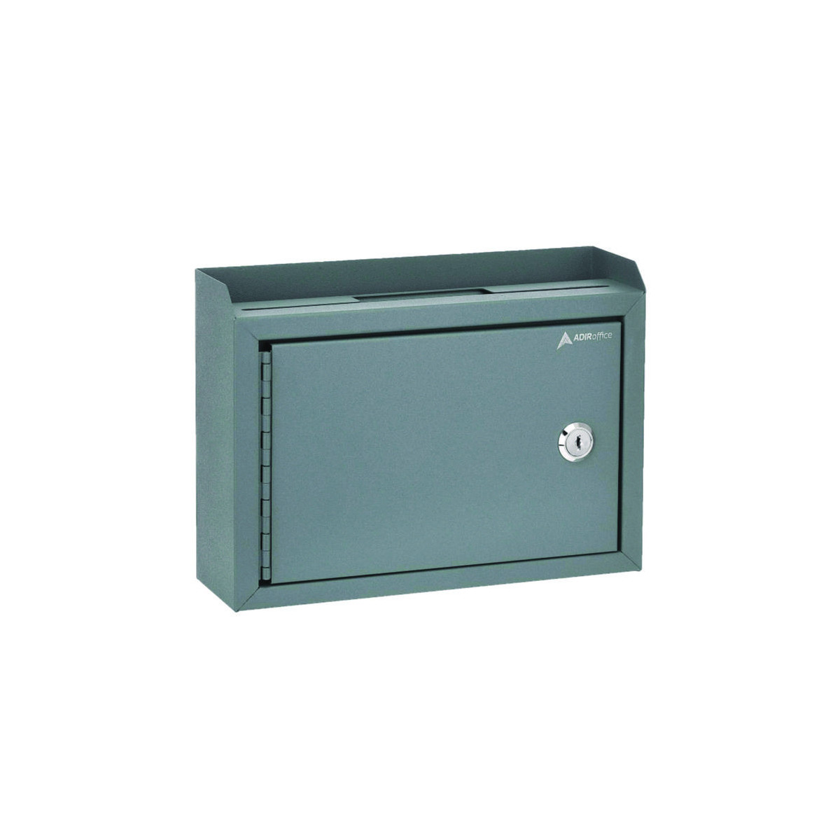 Designed to hold keys, cash, envelopes or materials dropped off after hours. Constructed of durable, heavy-gauge steel with a scratch-resistant finish. This multi-purpose drop box is ideal for retail stores, rental facilities, customer service counters, or manufacturing plants. Each box has a 0.25" slot that is wide enough to insert keys, ballots, mail, money or checks. A built-in storage compartment at the top of the box can be used to store blank forms, notepads and ballots. Equipped with pre-drilled holes and screws, the steel drop box can be mounted almost anywhere.