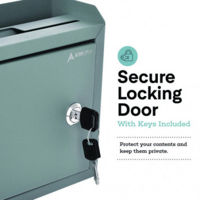 Designed to hold keys, cash, envelopes, interoffice mail and other important materials that need to be dropped off after hours. Constructed of durable, heavy-gauge steel to provide long-lasting strength, this mailbox is designed to last you well into the future. It's furnished using a powder-coated, scratch- and chip-resistant finish to minimize signs of normal wear and tear that would normally accumulate from daily use. It can be placed in any company to get suggestions and/or comments from your employees or customers. Knowing that their comments will be kept confidential and that they can remain anonymous allows people to voice their greatest concerns. To succeed in business, communication is key. It's also ideal for retail stores, rental facilities, customer service counters, manufacturing plants, auto dealers and other facilities, featuring a 0.25" slot on top that accepts letters, checks, keys and cash. In addition, it boasts a built-in storage compartment that can be used to store blank forms, notepads, ballots and more. A secure, door-mounted disc tumbler lock is used to prevent theft, ensuring the items inside are safe and secure. Meanwhile, two keys allow for quick, easy access to open the box and remove the items inside, making more room for additional material. Finally, pre-drilled holes and included screws allow for quick and easy installation on any wall.