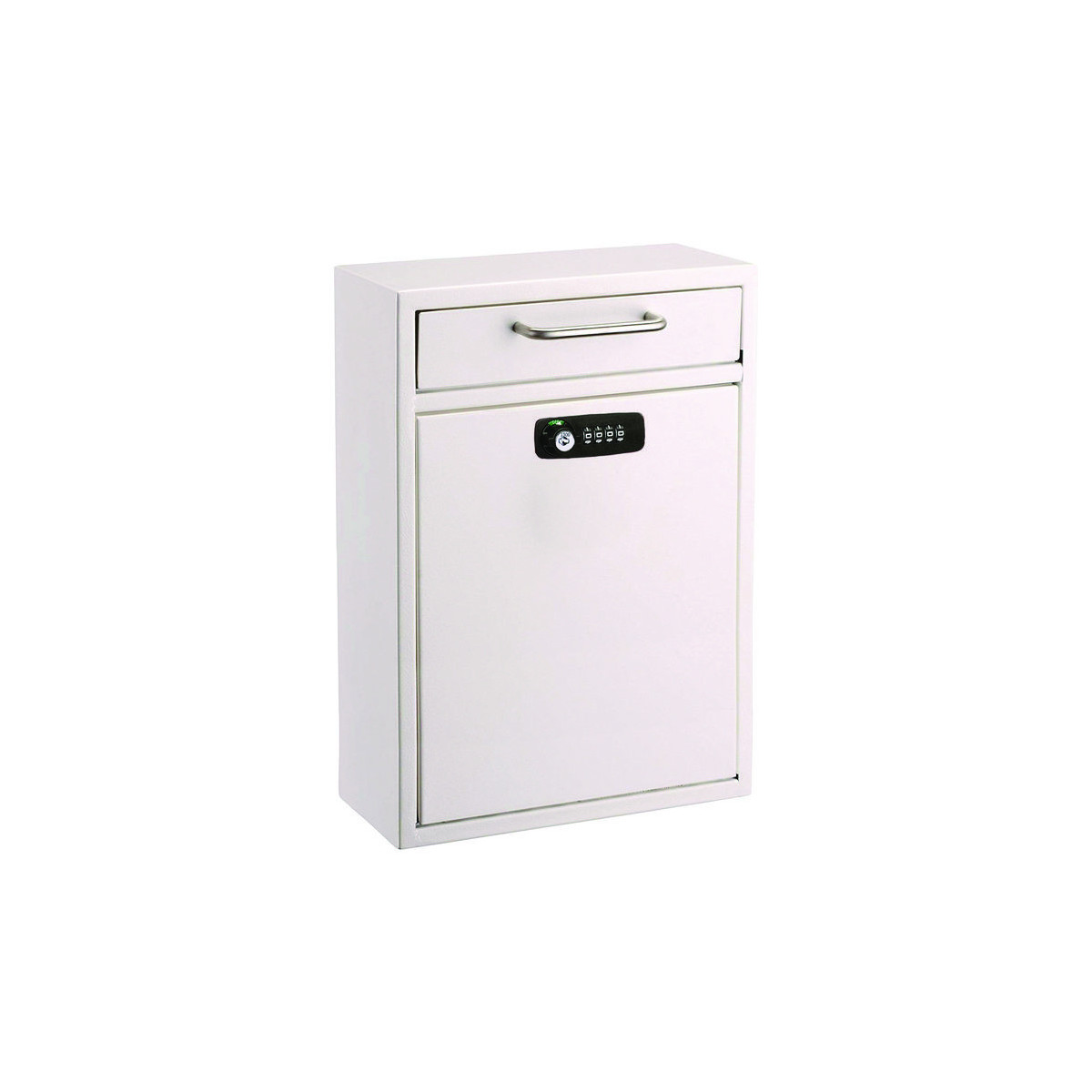 Designed to hold keys, cash, envelopes or other important materials that need to be dropped off after hours. Constructed of durable, heavy-duty 16-gauge galvanized steel to provide long-lasting strength and furnished using a powder-coated, scratch-resistant finish. Wide enough to accommodate bigger items than your average drop box slot. This secure drop box features an anti-fishing bin door that accepts letters, checks, keys and other small bundles.