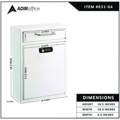 The AdirOffice Locking Drop Box Wall Mounted Mailbox is designed to hold keys, cash, envelopes or other important materials that need to be dropped off after hours. Constructed of durable, heavy duty 16-gauge galvanized steel to provide long-lasting strength and furnished using a powder-coated, scratch-resistant finish, this mailbox is made to meet your needs year after year. Ideal for retail stores, military bases, rental facilities, customer service counters, manufacturing plants, auto dealers and other facilities, this secure drop box features an anti-fishing bin door that accepts letters, checks, keys and other small bundles. To prevent theft, an anti-pry latch locking mechanism is used. The locking access door features a commercial grade 12-disc wafer lock and includes three laser cut keys to ensure the items inside are safe and secure. To finish it off, this mailbox includes four mounting screws, four stainless steel washers, a driver bit and a drill bit for quick and easy installation of the box wherever you'd like to mount it.