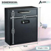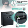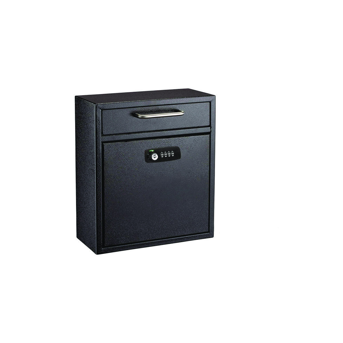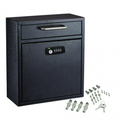 Medium Secure Drop Box Wall Mounted Locking Mail Box with Key and Combination Lock, 10.51 x 4.72 x 12, Black