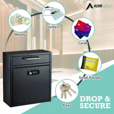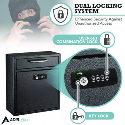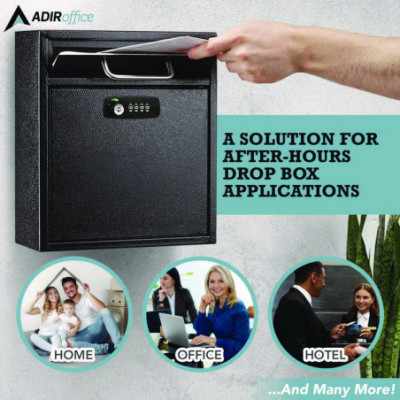 The AdirOffice Locking Drop Box Wall Mounted Mailbox is designed to hold keys, cash, envelopes or other important materials that need to be dropped off after hours. Constructed of durable, heavy duty 16-gauge galvanized steel to provide long-lasting strength and furnished using a powder-coated, scratch-resistant finish, this mailbox is made to meet your needs year after year, Ideal for retail stores, military bases, rental facilities, customer service counters, manufacturing plants, auto dealers and other facilities, this secure drop box features an anti-fishing bin door that accepts letters, checks, keys and other small bundles, To prevent theft, a anti-pry latch locking mechanism is used. The locking access door features a commercial grade 12-disc wafer lock and includes three laser cut keys to ensure the items inside are safe and secure. To finish it off, this mailbox includes four mounting screws, four stainless steel washers, a driver bit and a drill bit for quick and easy installation of the box wherever you'd like to mount it.