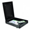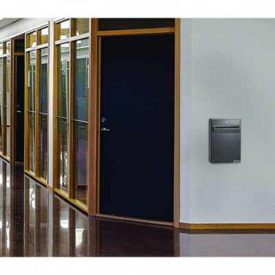 This low-profile 2.38" deep wall-mounted steel drop box is perfect for any indoor or weather-protected location for receipt, temporary secure storage and retrieval of all items that can be fitted into its 9.25" x 0.44" slot.