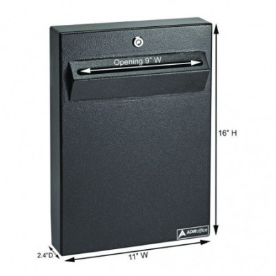 Perfect for any indoor or weather-protected location, the AdirOffice Wall Mount Drop Box for secure document storage is a low-profile but secure way of collecting important items like receipts, letters, and even cash. Durable construction and a neutral-colored finish make it ideal for any business where secure storage is important on a temporary basis. The 2.2" depth wall mounted steel drop box is specifically designed for receipt, temporary secure storage and retrieval of all items that can fit into its 9.25" x 0.4" slot. It readily accepts legal-sized documents, envelopes and other important correspondence that can be easily accessed through the storage compartment. made from steel and features a secure pick-resistant lock and two keys. Mounting hardware is included.