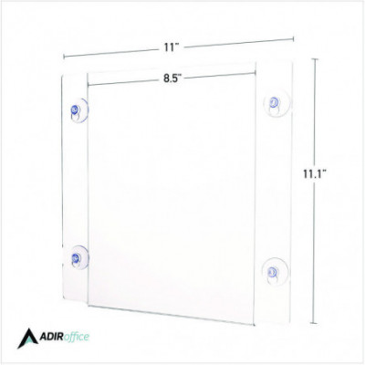 Posting temporary notices for employees, customers, special events, sales, opening/closing hours no longer needs reliance on cellophane tape, masking tape or similar stickums that leave messy residue on glass walls, doors and windows when the event is over. This sign holder is the best alternative to taped notices and subsequent challenges of removing tape residue from glass surfaces. Separate notices on large stock easily slip into the clear acrylic AdirOffice sign holder to reach incoming and outgoing patrons and personnel with relevant messages. Though firmly attached to glass surfaces with its four suction cups, the sign holder is easily lifted up and off to clean glass behind the sign support.