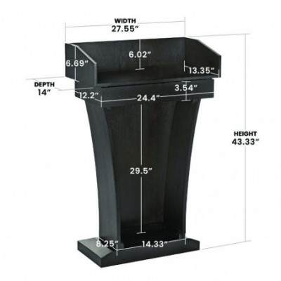The ultimate portable lectern to bolster your confidence and give you authority when you speak. Focus less on worrying about how you look on stage and focus more on delivering a speech that will cement itself into the minds of your listeners. Ample reading surface holds your essentials: books, notes and pens. Lightweight 55 lb frame is easy to move around and adjust. Assembles in five minutes or less.