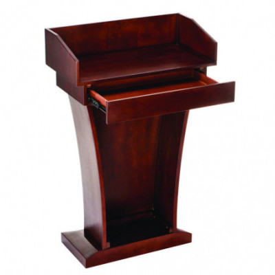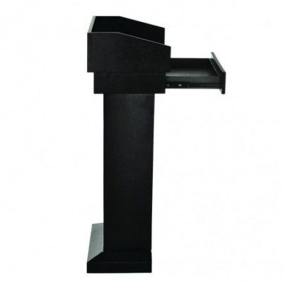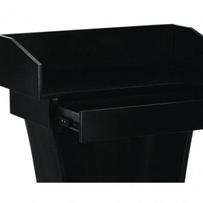 Well equipped with ample storage space, offering a wide tray area and excellent drawer space. This presentation lectern makes a stylish, functional and affordable unit for your restaurant or business. With the 6" tall back on the tray, presentation materials and/or retail supplies will be hidden from your audience or customers. The tray space enables you to carry paper, writing utensils, charts, office supplies, drinks and more. The drawer allows you to store extra items at your convenience for future speaking presentations and allows you to have it for the next day.