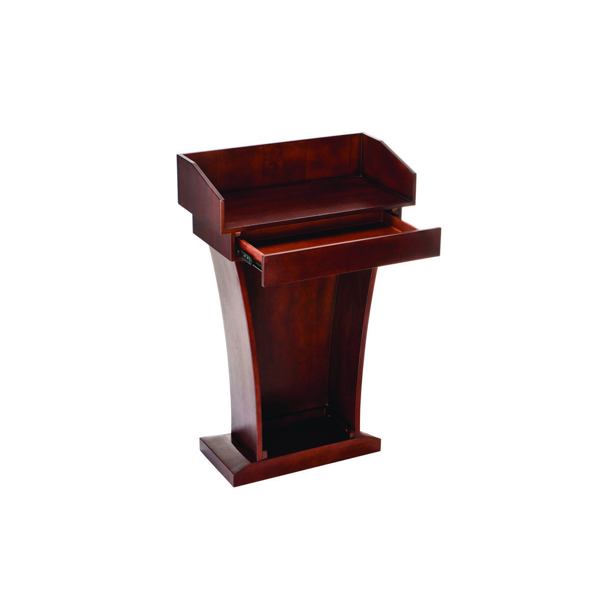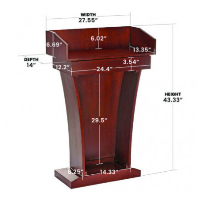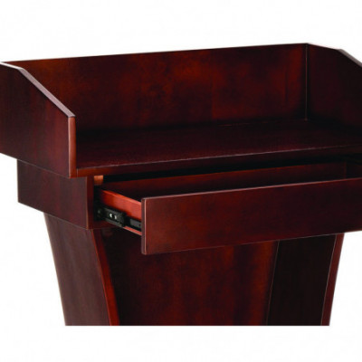 Well equipped with ample storage space, offering a wide tray area and excellent drawer space. This presentation lectern makes a stylish, functional and affordable unit for your restaurant or business. With the 6" tall back on the tray, presentation materials and/or retail supplies will be hidden from your audience or customers. The tray space enables you to carry paper, writing utensils, charts, office supplies, drinks and more. The drawer allows you to store extra items at your convenience for future speaking presentations and allows you to have it for the next day.